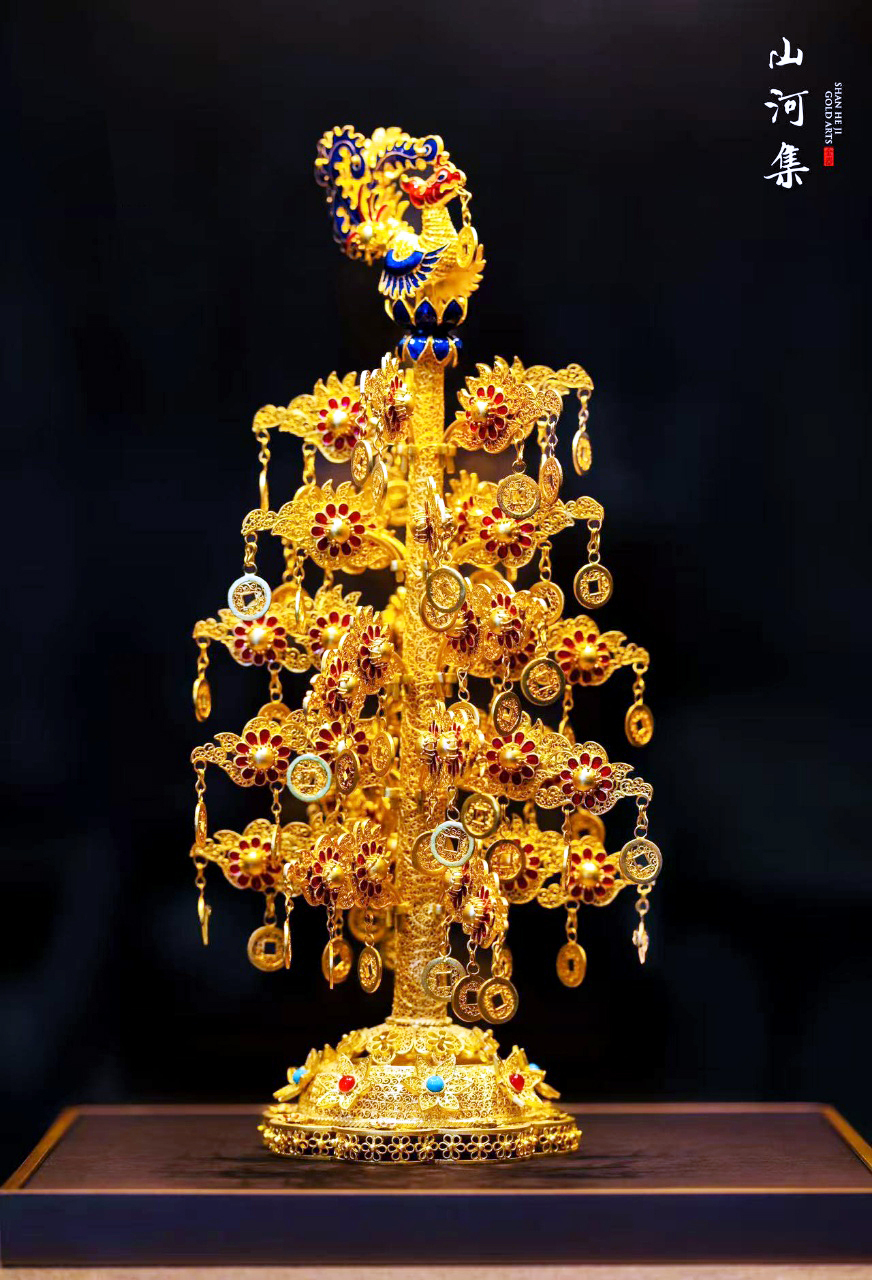 《凤飞九天钱树子》黄金艺术馆 黄金(花丝、搪瓷彩工艺) 110*110*320mm 受访者供图