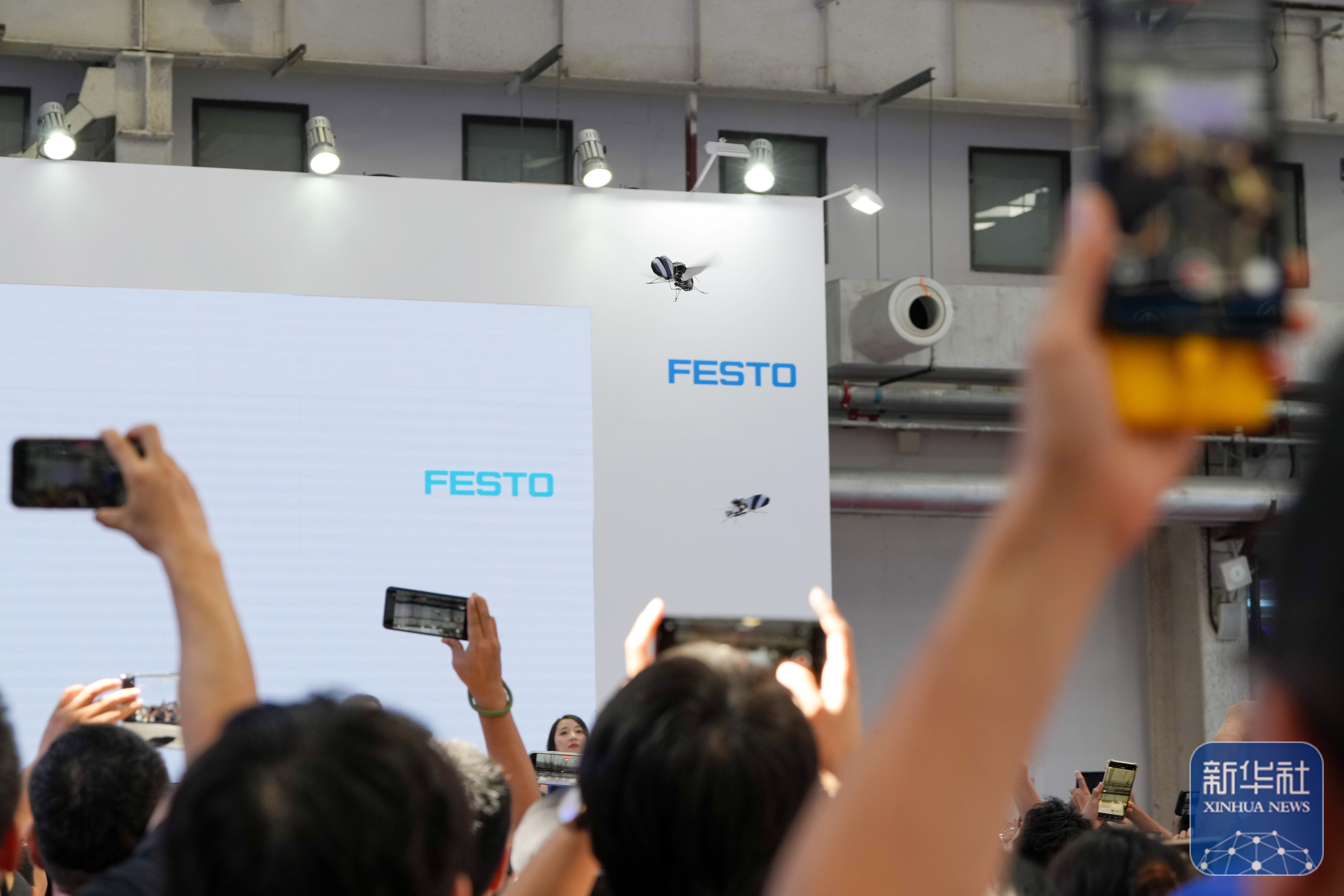 ↑ 2025天下机器东说念主大会上展示的仿盼望器鸟(8月8日摄)。