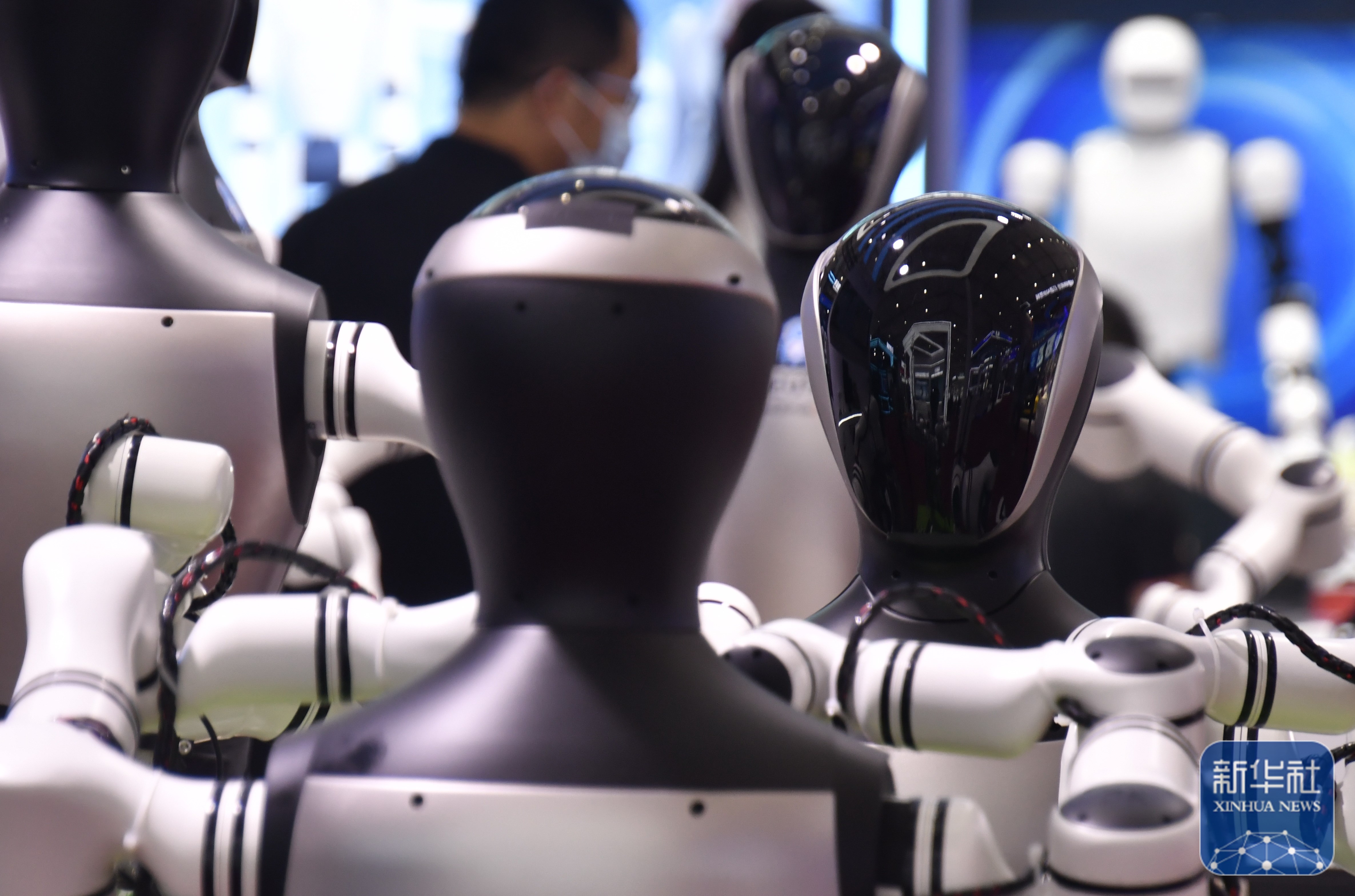↑ 2025天下机器东说念主大会展馆内展出的机器东说念主(8月8日摄)。